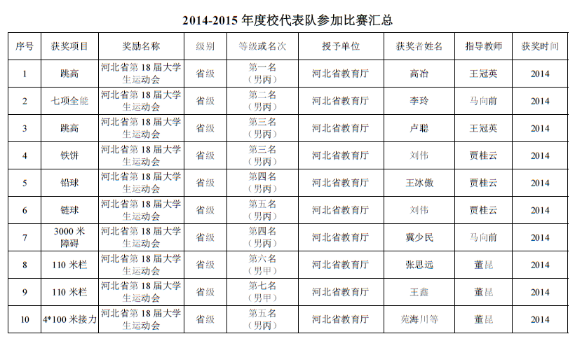 2014-2015年度校代表队参加比赛汇总