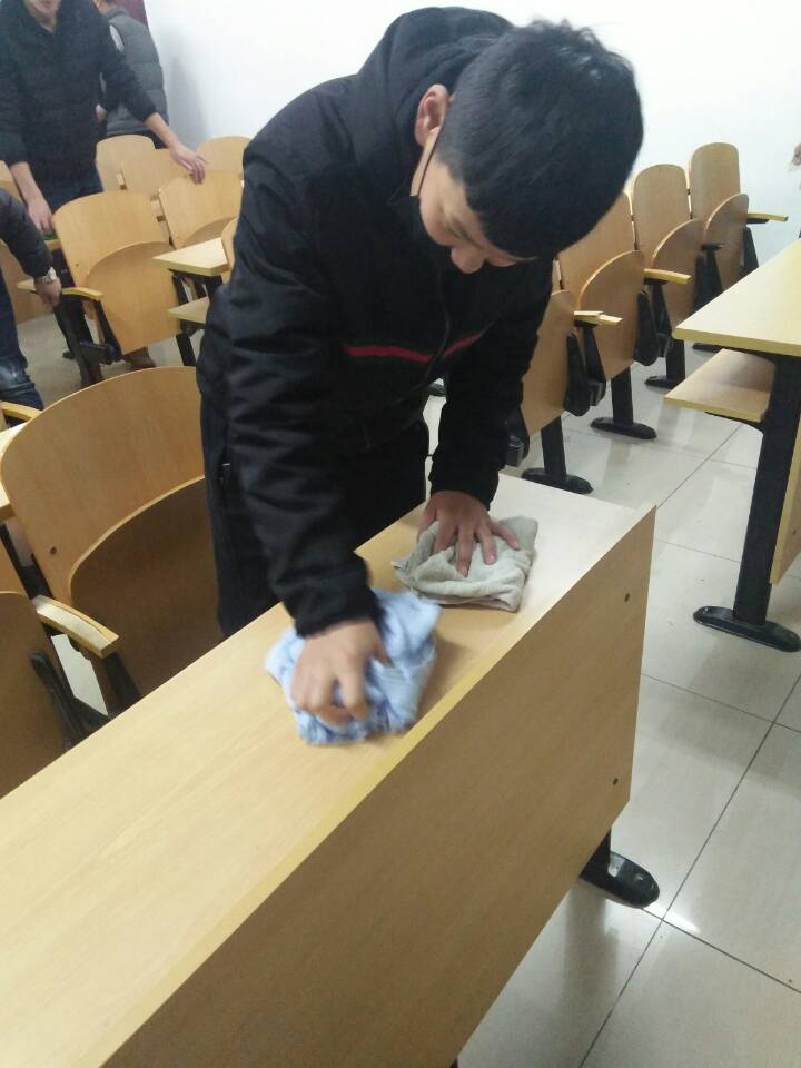为了进一步美化校园环境,加强公司学风建设,营造良好的学习生活环境,11月17日上午10:00至11:30,Playace平台官网入口在体育馆109和110教室举办“给课桌一张清洁的脸”主题活动。活动由2014级全体员工参加,徐延丽老师作了积极的动员。