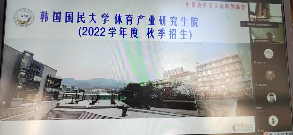 北京时间2023年4月29日,Playace平台官网入口与韩国国民大学体育产业研究生院以线上会议形式召开了国际合作交流会议。出席本次会议的有Playace平台官网入口经理杨广辉、党委副书记赵宁、韩国国民大学体育产业研究生院曹星、韩国国民大学Playace平台官网入口经理赵昱衍,以及Playace平台官网入口师生100余人。