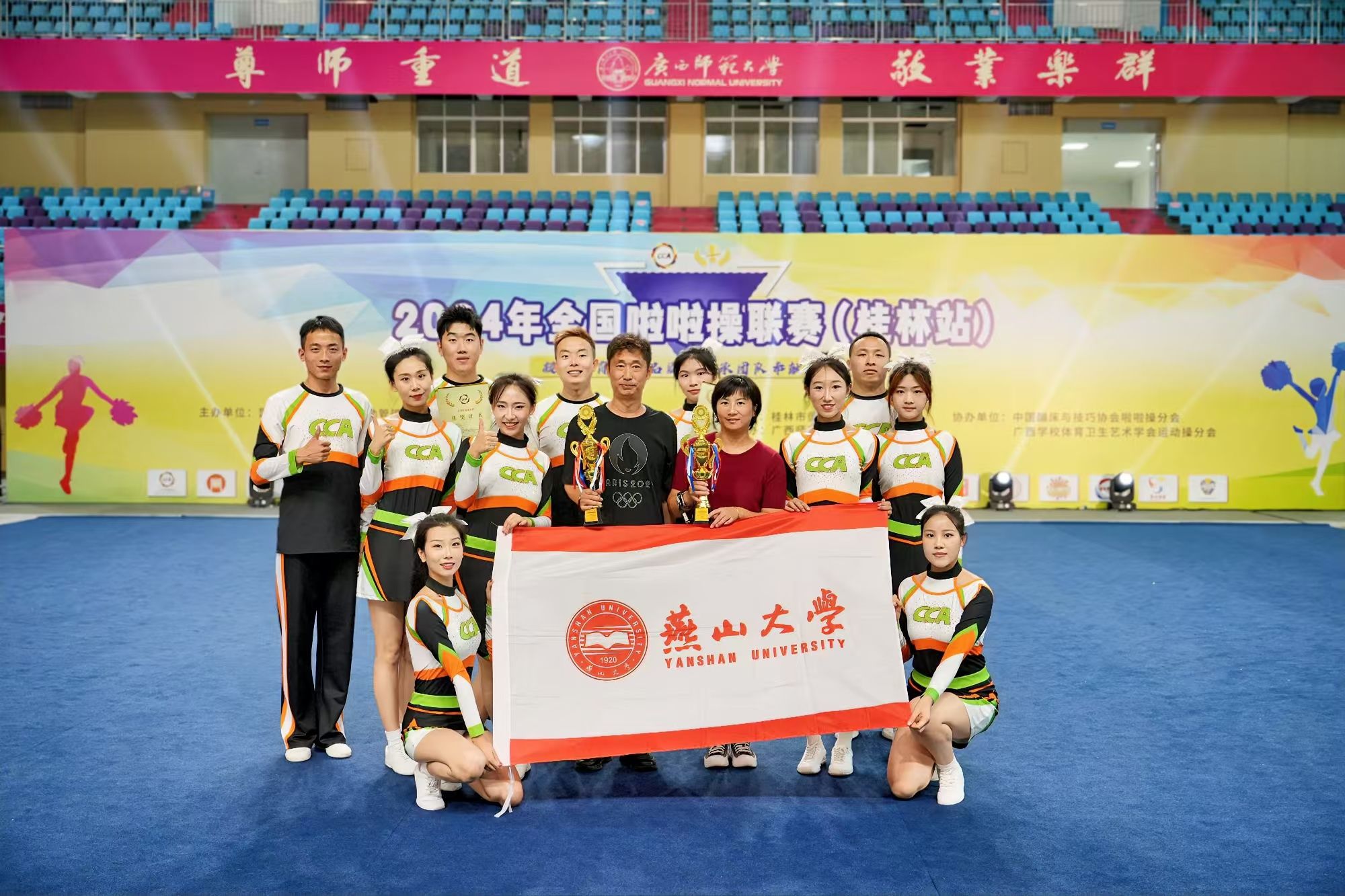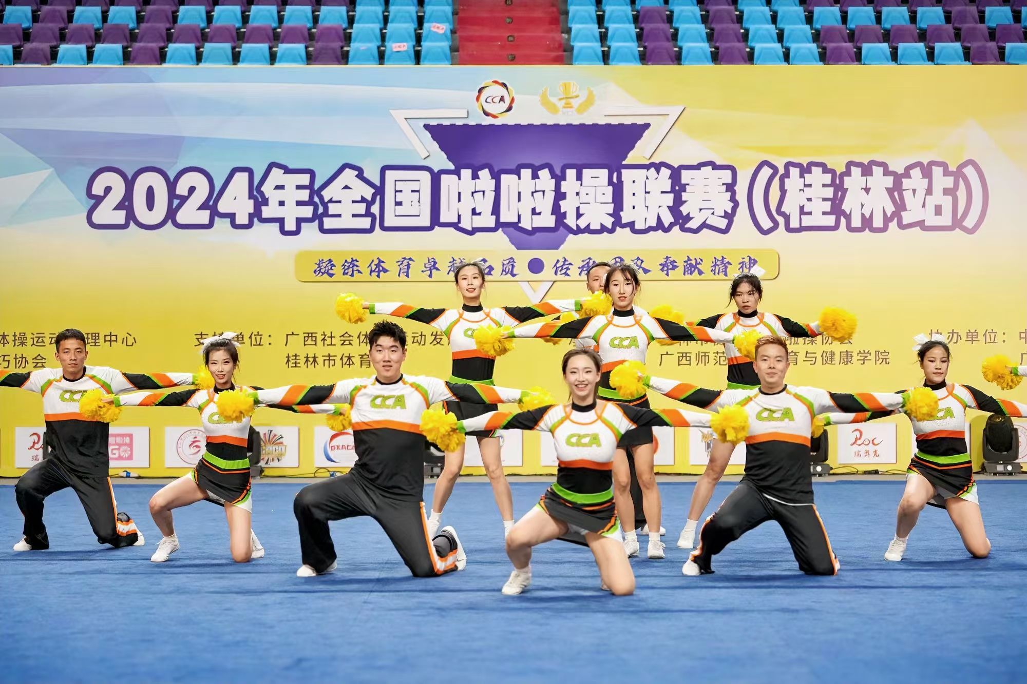 2024年全国啦啦操联赛在广西桂林盛大开幕,来自全国9个省(自治区和直辖市)的158支代表队、2900余人参加盛会,齐聚山水甲天下桂林,共同舞动花球、托举未来!公司健美操啦啦操队在李晓辉、马宏敏老师的精心指导下,经过长期的刻苦训练,以出色的表现获得了参赛资格并取得了优异成绩。