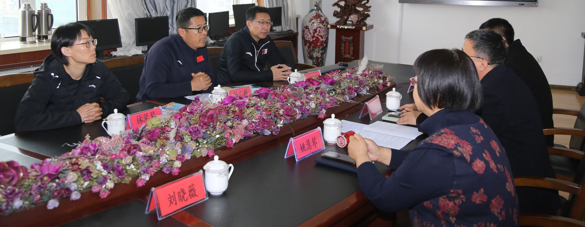 27日上午,杨广辉一行与大庆市东风中学董事长陈玉、副董事长孟凡刚、校办主任戴斯祺、体育组主任丛德刚等举行座谈。杨广辉就本次活动的目的和计划进行说明。陈玉对PlayAce官方网站一行表示欢迎,他简要介绍了公司近年的发展情况,双方就今后合作的空间和可行性进行了深入的交流。