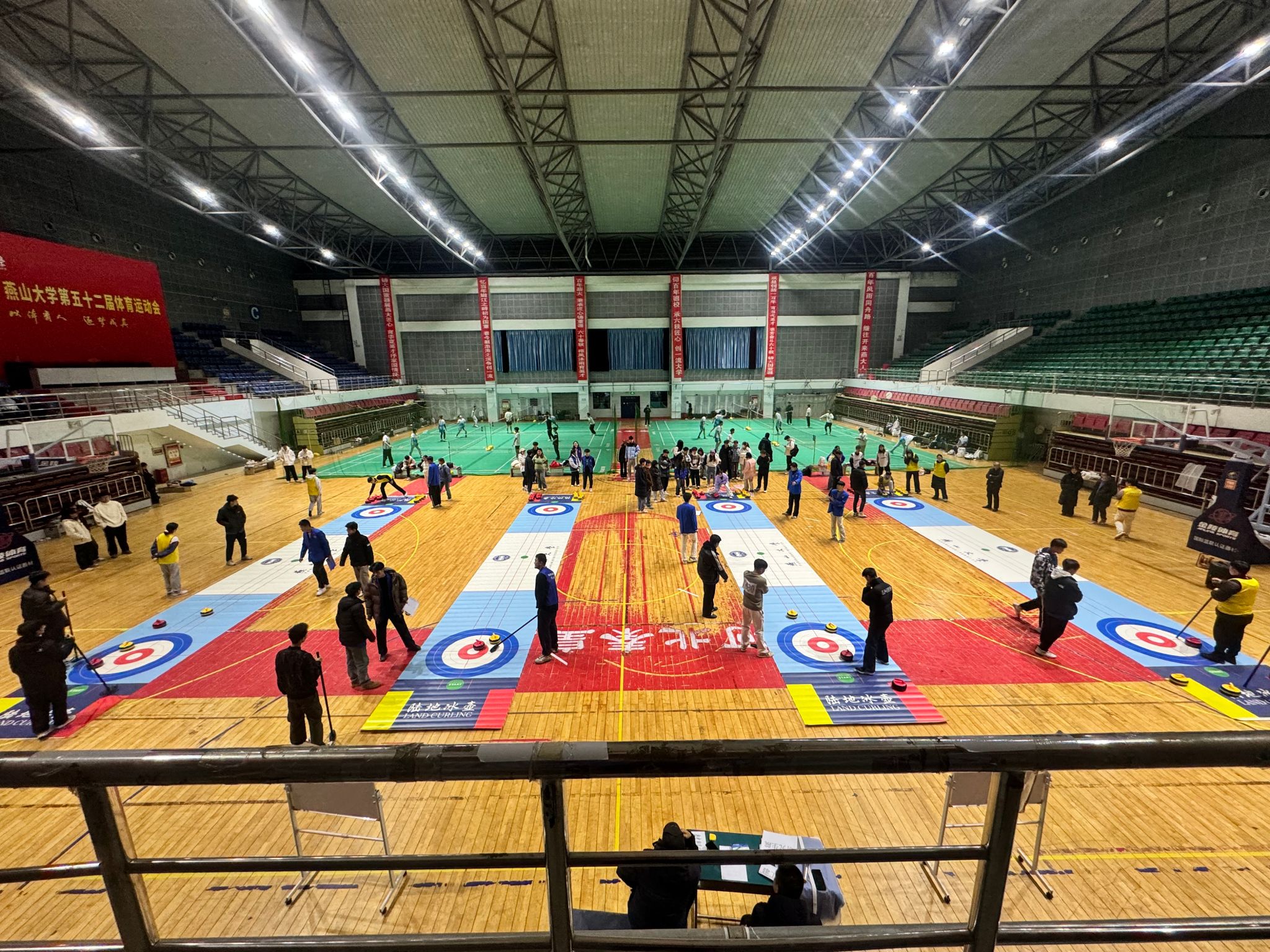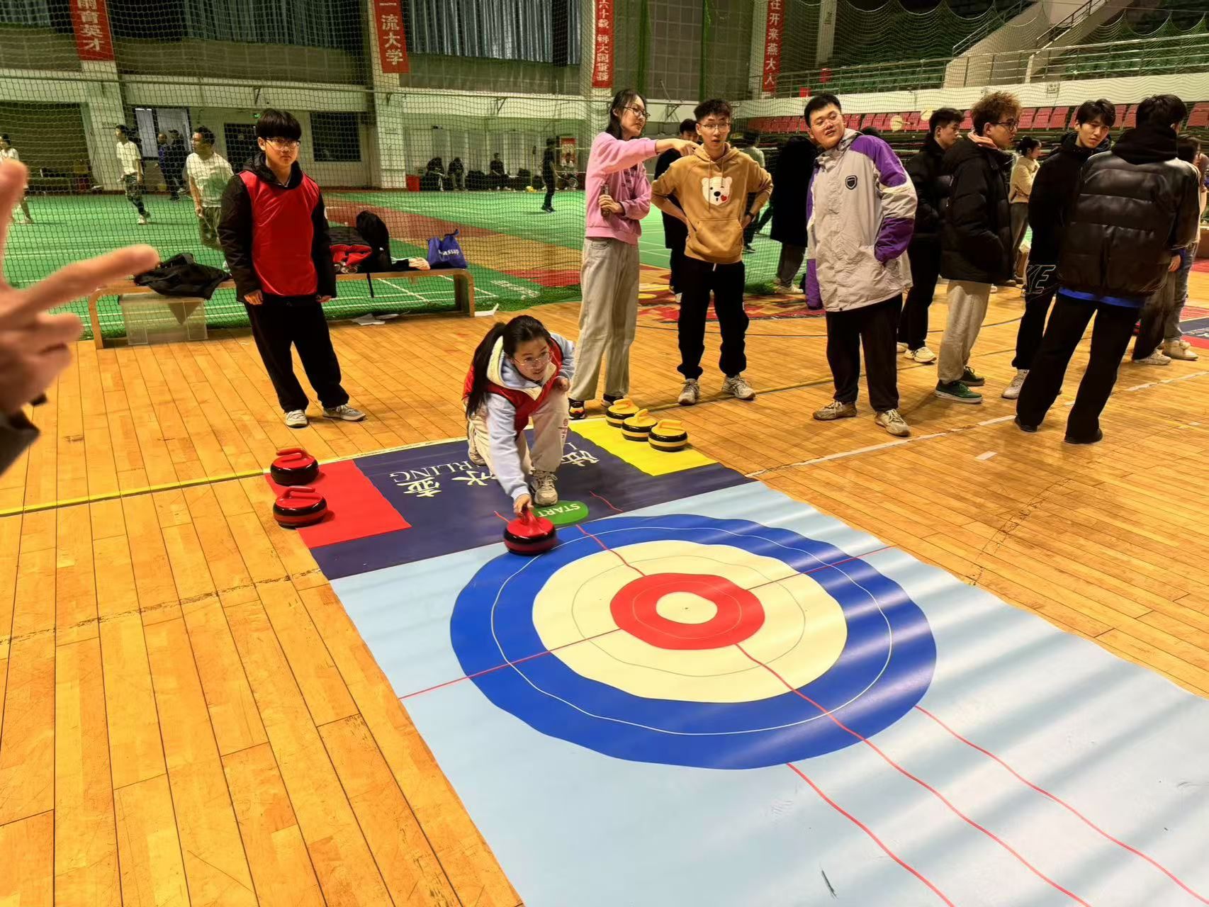 比赛现场气氛热烈,选手们身着统一服装,手持冰壶,个个精神抖擞,斗志昂扬。各队选手沉稳应对,巧妙运用各种技巧和策略,选手们全神贯注,每一次投壶都精准而有力,将冰壶准确地投放到目标位置,充分展现了高超技艺和团队协作精神,赢得观众阵阵喝彩。比赛现场气氛热烈,展现出了高超的技巧和团队协作精神,在赛场上尽情挥洒青春的汗水。