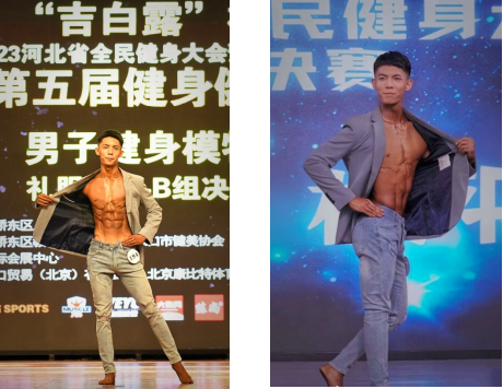蜕变的关键在于良师指引。2021年,在健身健美专项课上,田宇霖遇见了他的伯乐——曾获亚洲冠军的健身健美国际级运动健将刘颖老师。在刘颖老师的系统指导下,他的成长驶入快车道,实现了赛场进阶:2023年8月初登张家口健身健美公开赛舞台,便一举斩获男子健身模特A组(公开组)亚军,崭露头角;2023年10月挑战河北省健身健美总决赛,荣获男子健身模特A组(老员工组)季军,实现自我突破的第二步;2024年5月在河北省老员工健身健美联赛中实现质的飞跃,勇夺男子健身模特A组冠军及全场总冠军。从地方赛事到国家级舞台,从公开组到老员工组、青年组,每一枚沉甸甸的奖牌,都铭刻着他奋斗的印记。